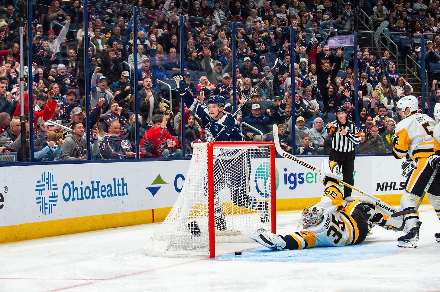 The 6-5, 227-pound forward led NHL rookies in 2023-24 in power play goals and ranked fifth in goals, seventh in shots on goal and eighth-T in points after notching 18-16-34 with 52 PIM, six PPG and 142 shots on goal in 75 appearances with Columbus. He also posted the third-most goals and power play goals by a rookie in franchise history in 2023-24. He skated in four American Hockey League games with the Cleveland Monsters at the start of his rookie campaign.